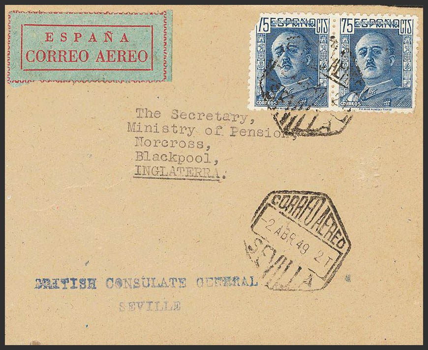 Estado Español Correo Aéreo. CORREO AEREO / SEVILLA. MAGNIFICA.