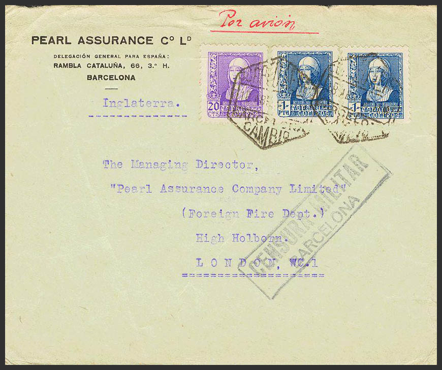 Estado Español Correo Aéreo. CORREO AEREO / BARCELONA / CAMBIO. MAGNIFICA.