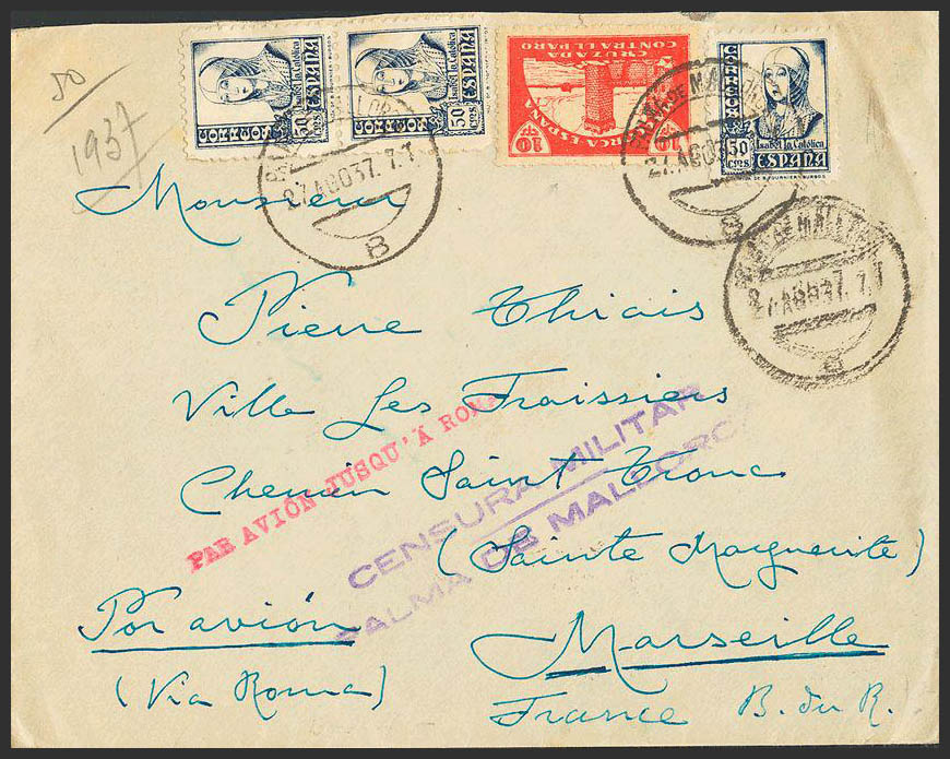 Estado Español Correo Aéreo. PALMA DE MALLORCA / 8, al dorso llegada. MAGNIFICA.