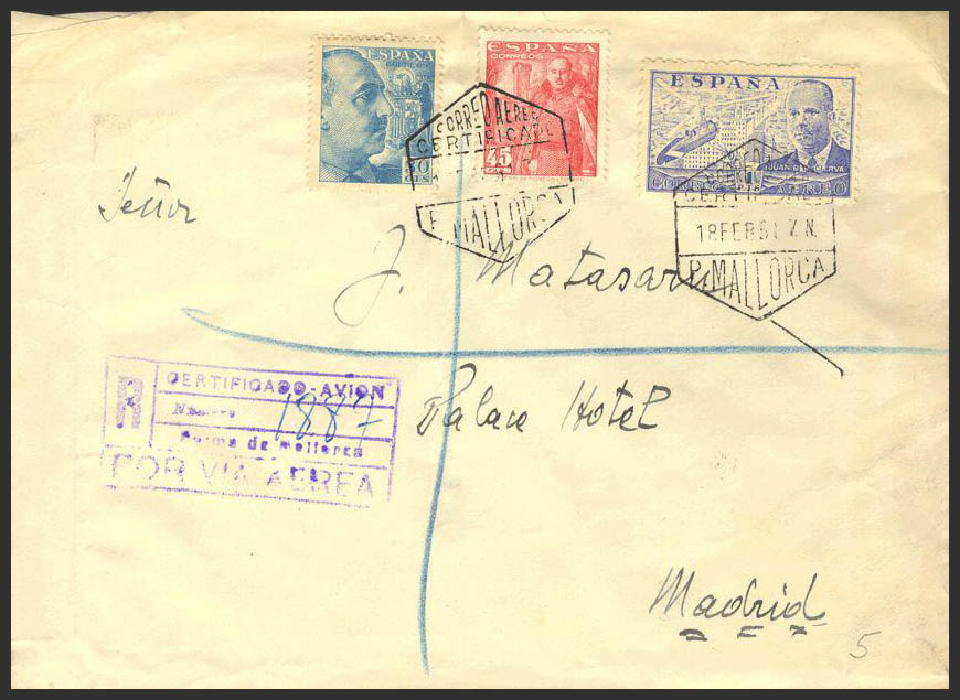 Estado Español Correo Aéreo. CORREO AEREO / CERTIFICADO / P. MALLORCA, al dorso llegada. MAGNIFICA.