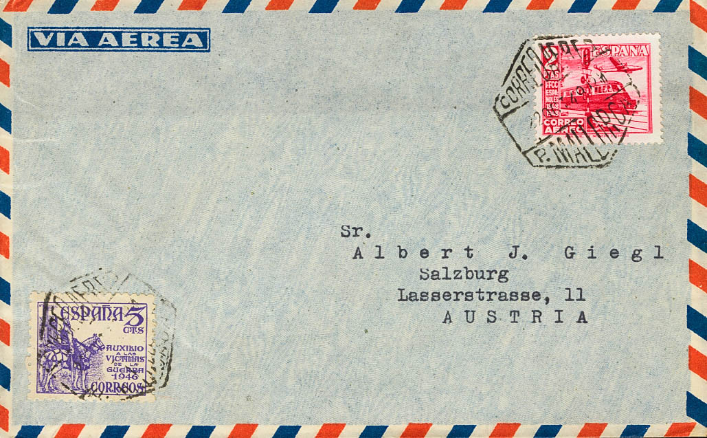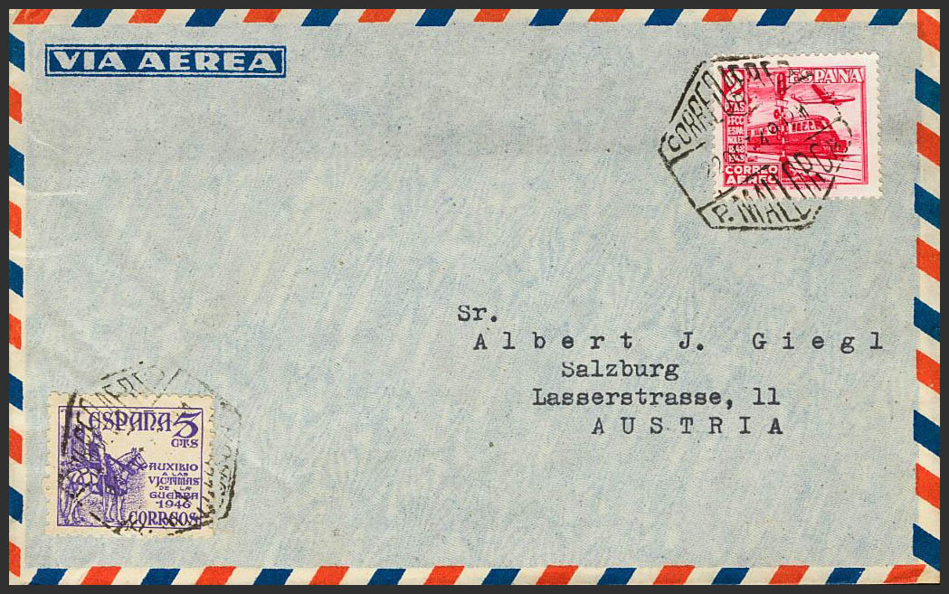 Estado Español Correo Aéreo. Al dorso llegada. MAGNIFICA.