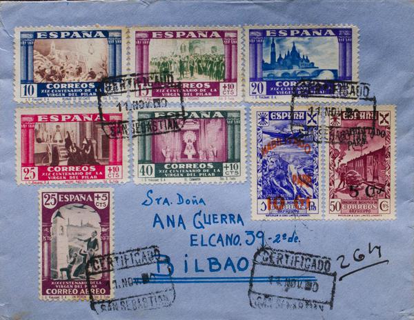 889/93, 904. 1940. Diversos valores. Certificado de SAN SEBASTIAN a BILBAO. Al dorso llegada. MAGNIFICA.
