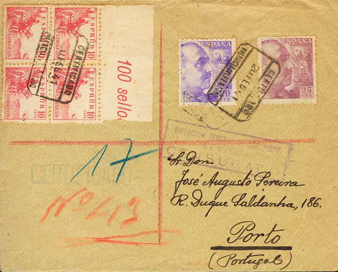 Estado Español Correo Certificado. CERTIFICADO / VALENCIA DEL VENTOSO, al dorso llegada. MAGNIFICA.