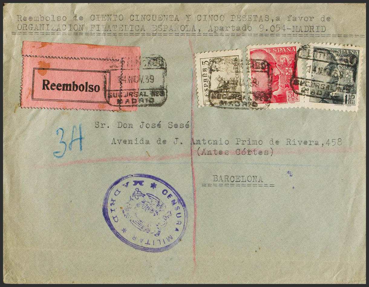 Estado Español Correo Certificado. Reembolso CERTIFICADO / MADRID. MAGNIFICO.