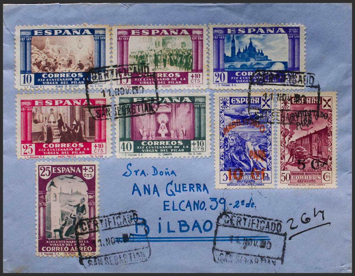 889/93, 904. 1940. Diversos valores. Certificado de SAN SEBASTIAN a BILBAO. Al dorso llegada. MAGNIFICA.