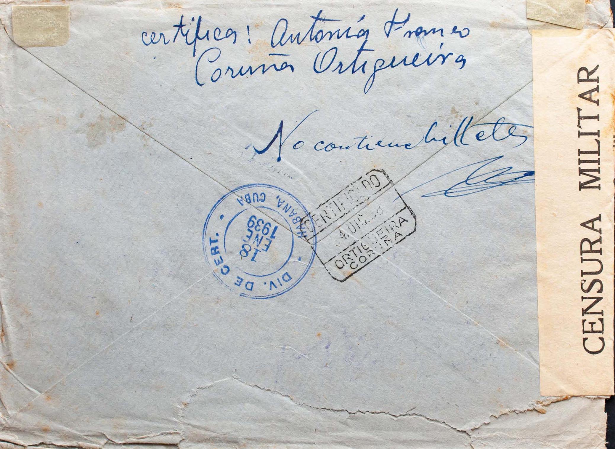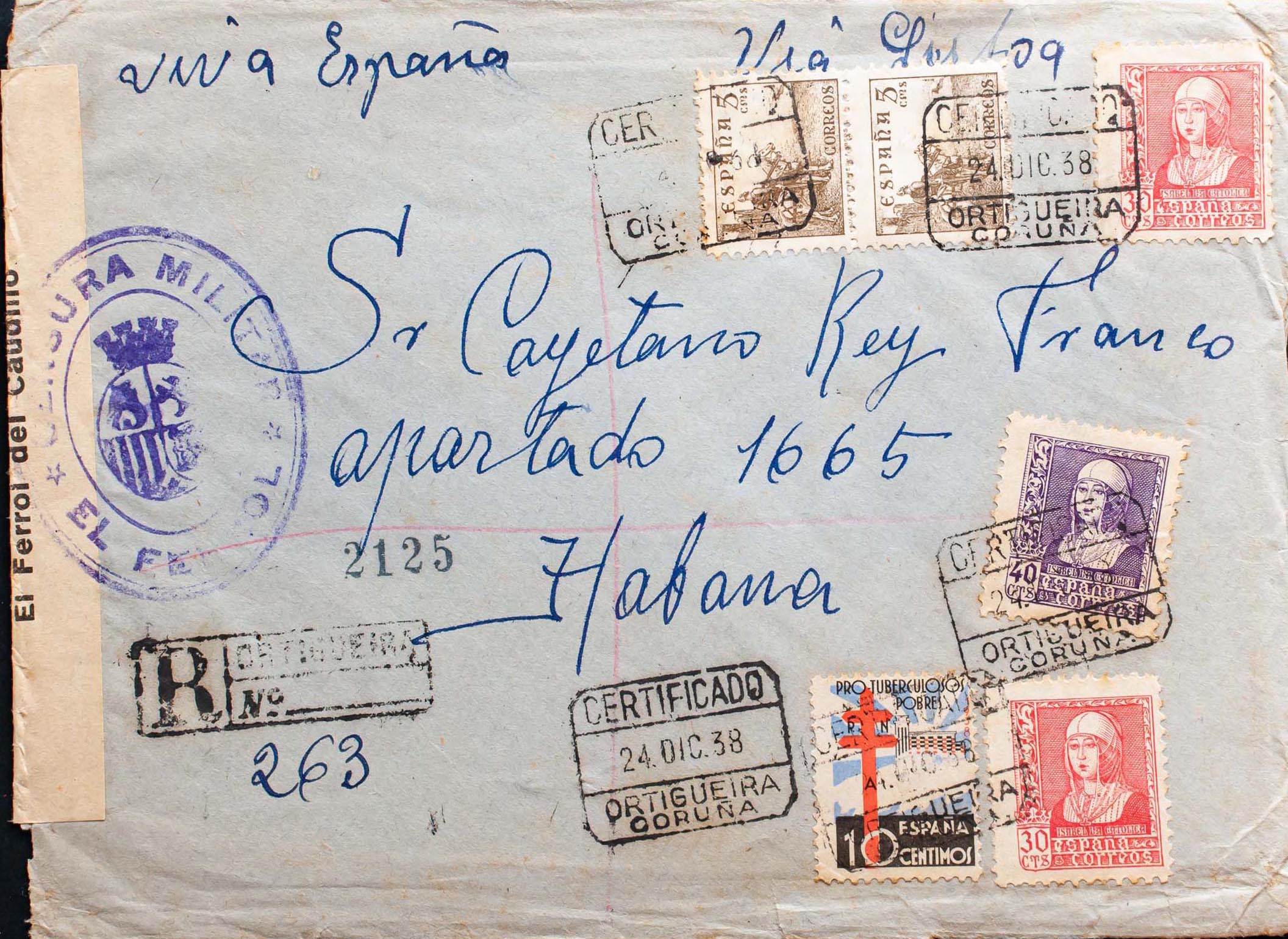 Estado Español Correo Certificado. CERTIFICADO / ORTIGUEIRA / CORUÑA, al dorso llegada. MAGNIFICA.