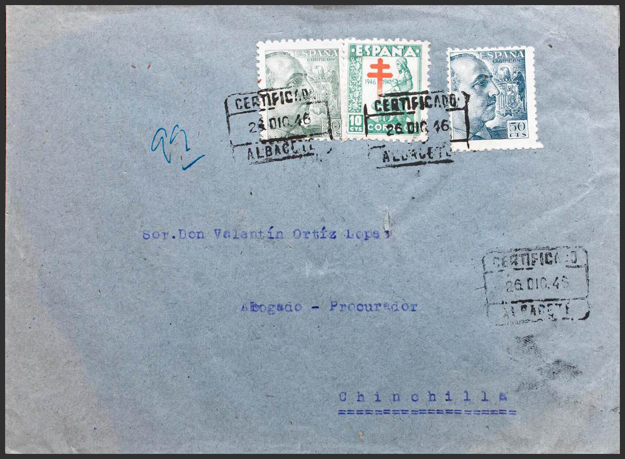 Estado Español Correo Certificado. PROTUBERCULOSO. CERTIFICADO / ALBACETE. MAGNIFICA.