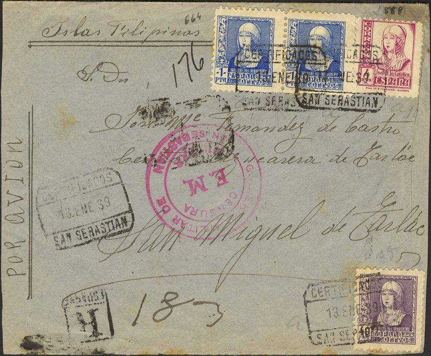 Estado Español Correo Certificado. Destino raro.