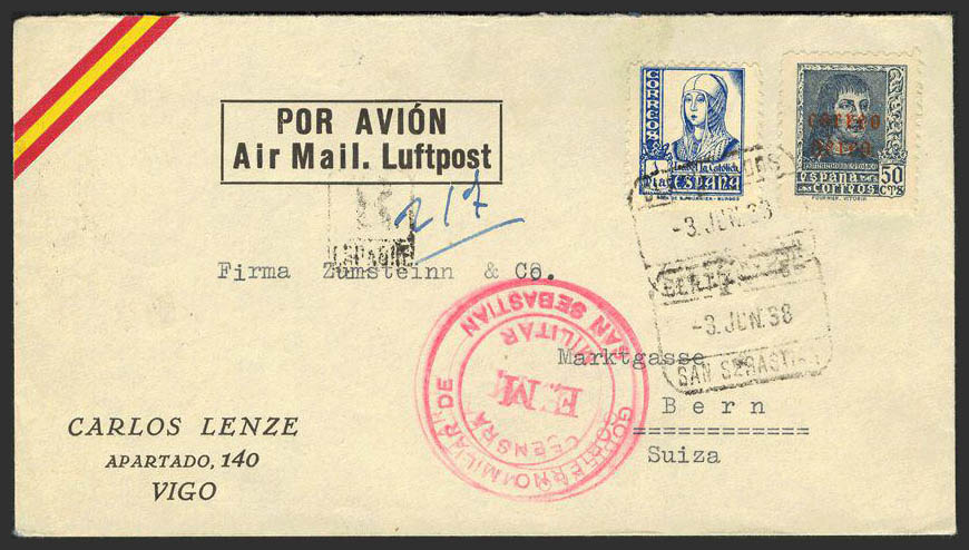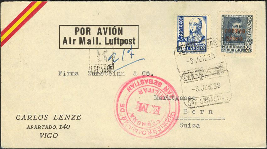 Estado Español Correo Certificado. Por Avión, al dorso llegada.