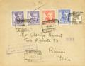954/56, 954, 916. 1943. Serie completa, 20 cts violeta y 5 cts sepia. Certificado de LA CORUÑA a RIMINI (ITALIA). Al dorso tránsitos Madrid, Génova, Milán y llegada. MAGNIFICA.