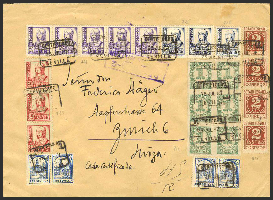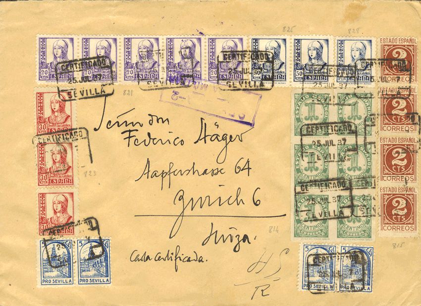 Estado Español Correo Certificado. Al dorso llegada. MAGNIFICA Y RARISIMA.