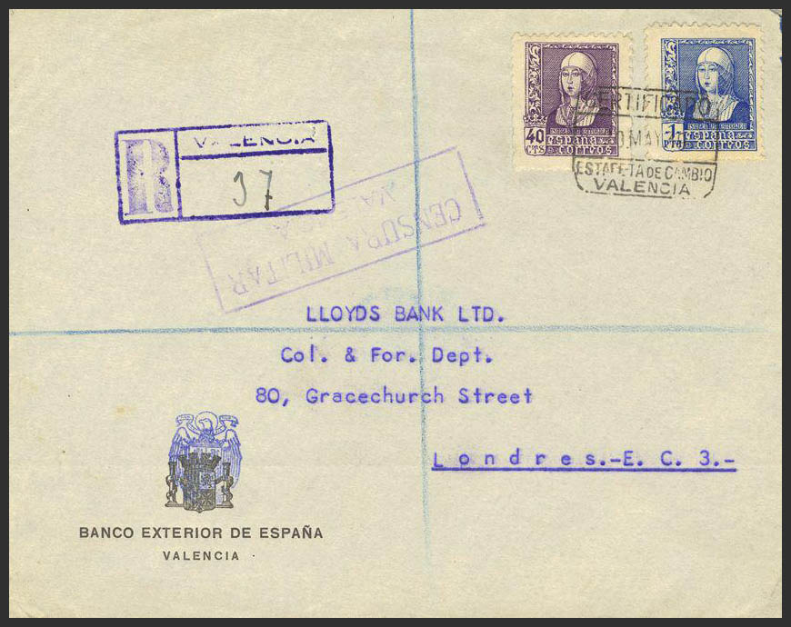 Estado Español Correo Certificado. CERTIFICADO / ESTAFETA DE CAMBIO / VALENCIA, al dorso llegada. MAGNIFICA.
