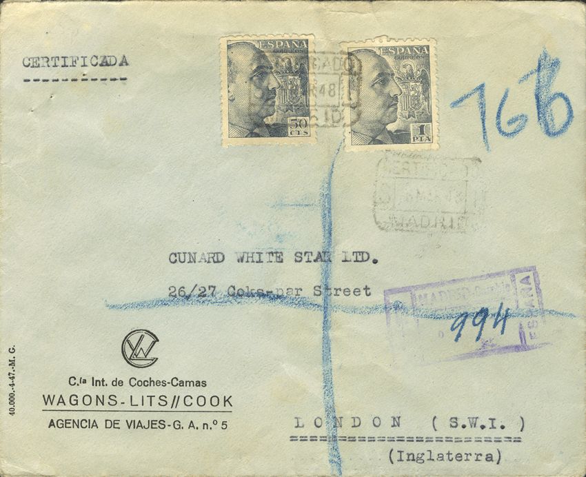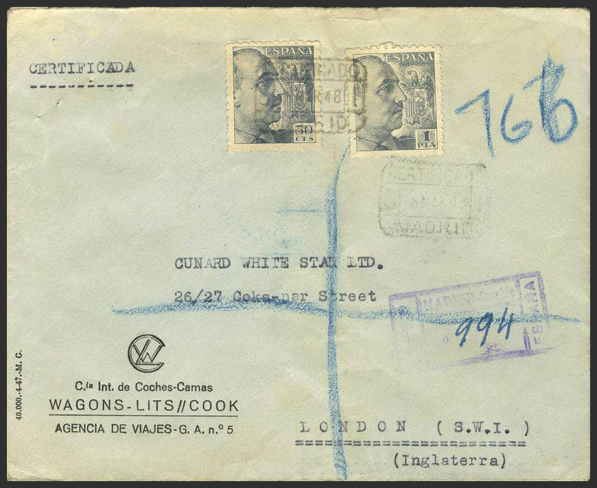 Estado Español Correo Certificado. CERTIFICADO / MADRID. MAGNIFICO.
