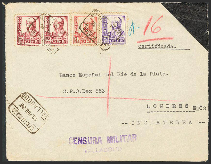 Estado Español Correo Certificado. CERTIFICADO / VALLADOLID. MAGNIFICA.
