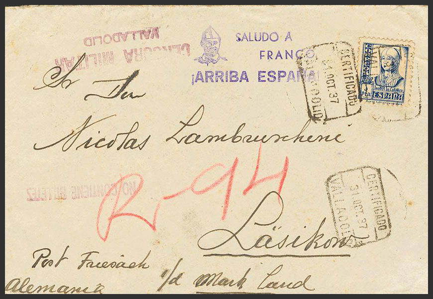 Estado Español Correo Certificado. CERTIFICADO / (VALLADOLID), al dorso tránsito. MAGNIFICA.