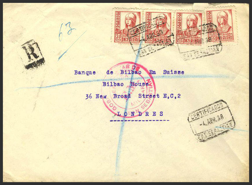 Estado Español Correo Certificado. CERTIFICADOS / SAN SEBASTIAN. MAGNIFICA.