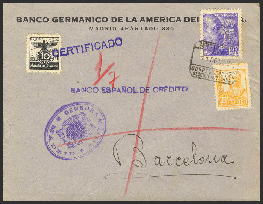 Estado Español Correo Certificado. CERTIFICADO / CORREO CENTRAL / SECCION NOCTURNA, al dorso llegada. MAGNIFICA.