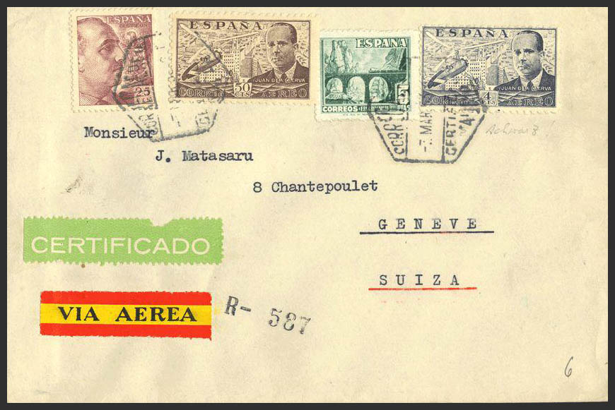 Estado Español Correo Certificado. CORREO AEREO / CERTIFICADO, al dorso llegada. MAGNIFICA.