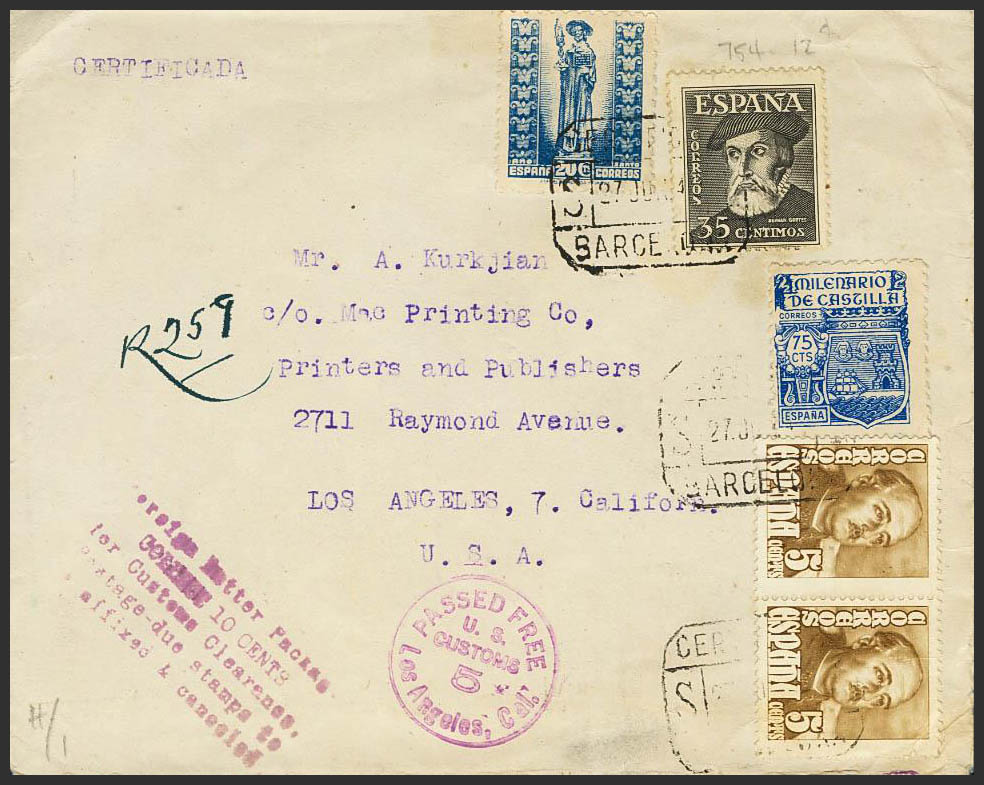Estado Español Correo Certificado. CERTIFICADO / BARCELONA. MAGNIFICA.