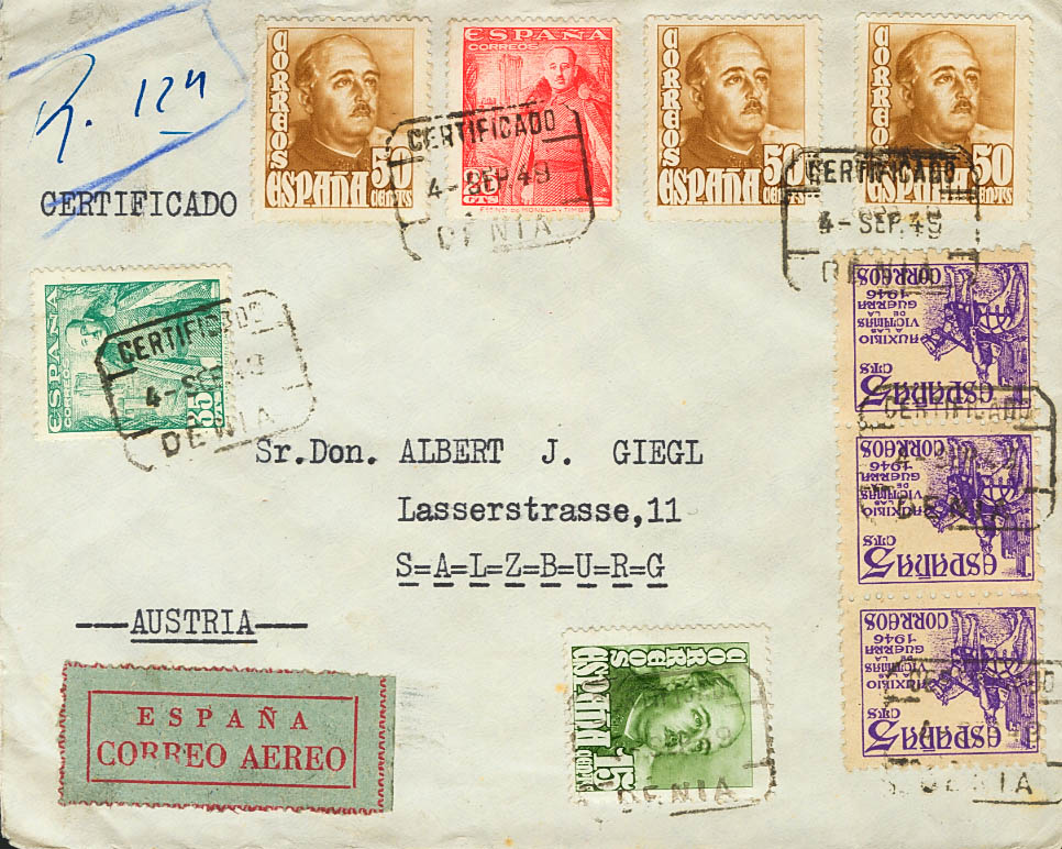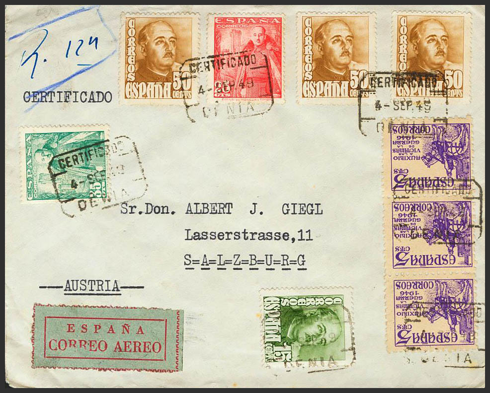 Estado Español Correo Certificado. CERTIFICADO / DENIA. Al dorso llegada. MAGNIFICA.