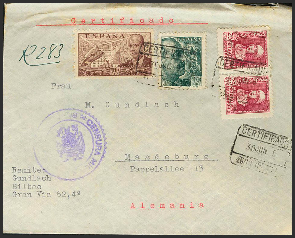 Estado Español Correo Certificado. CERTIFICADO / BILBAO, al dorso llegada. MAGNIFICA.