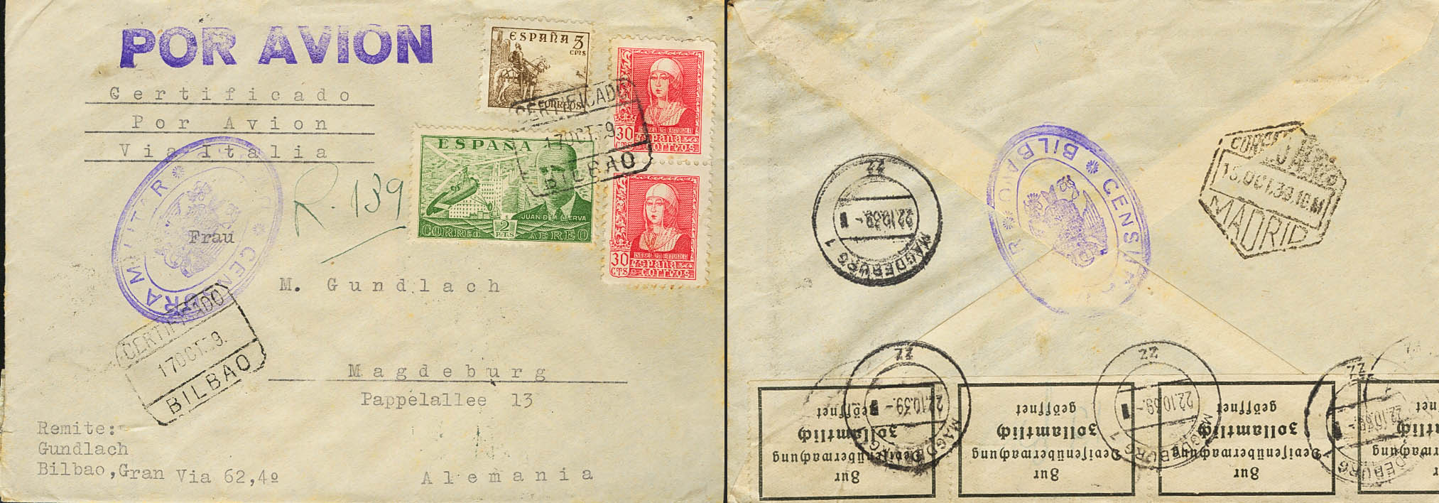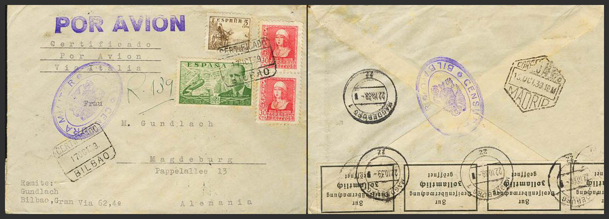 Estado Español Correo Certificado. Al dorso llegada. MAGNIFICA.