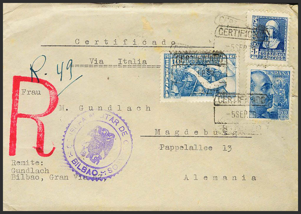 Estado Español Correo Certificado. CERTIFICADO / BILBAO. MAGNIFICA.
