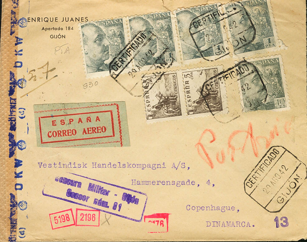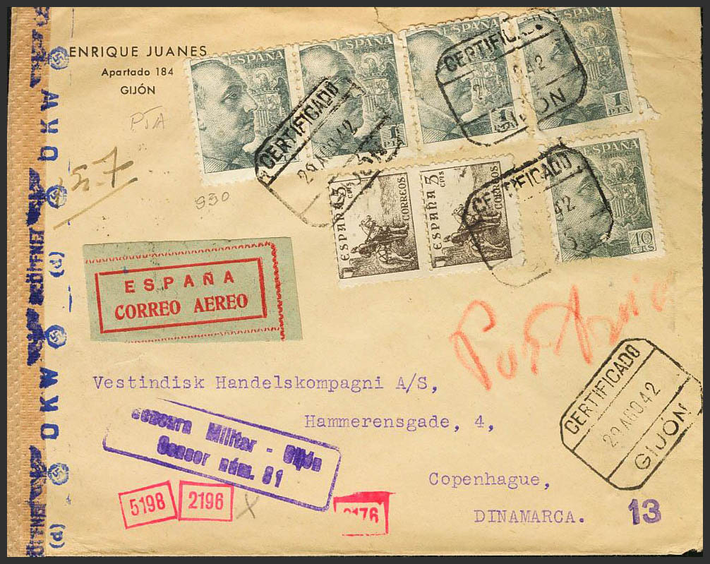 Estado Español Correo Certificado. Al dorso tránsito (insignificante defecto). MAGNIFICA.