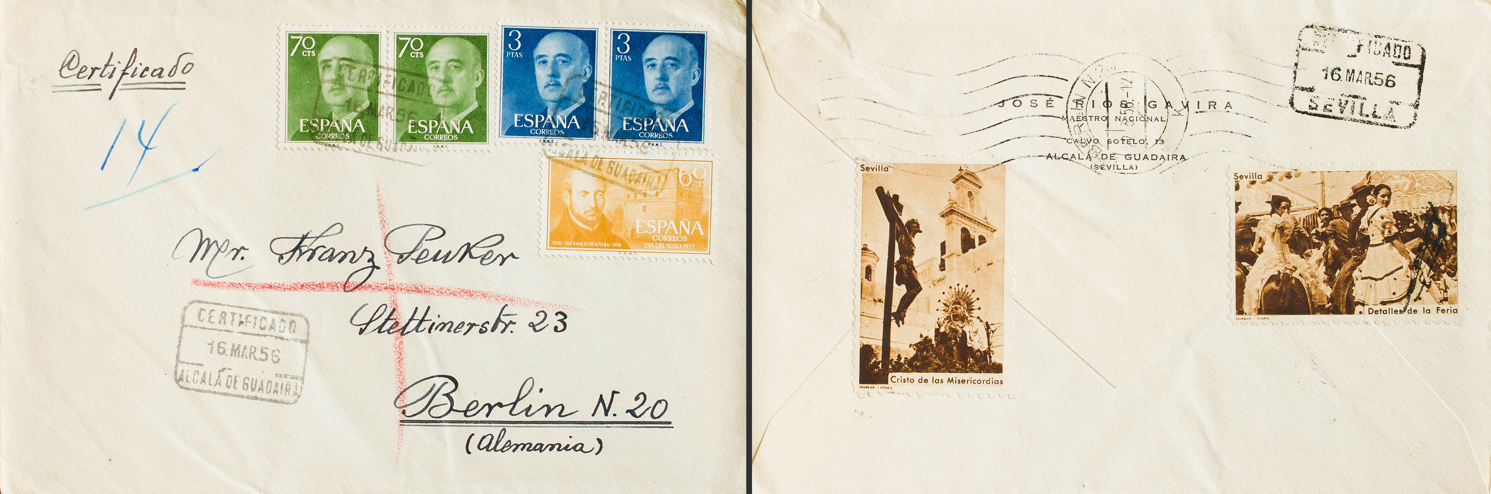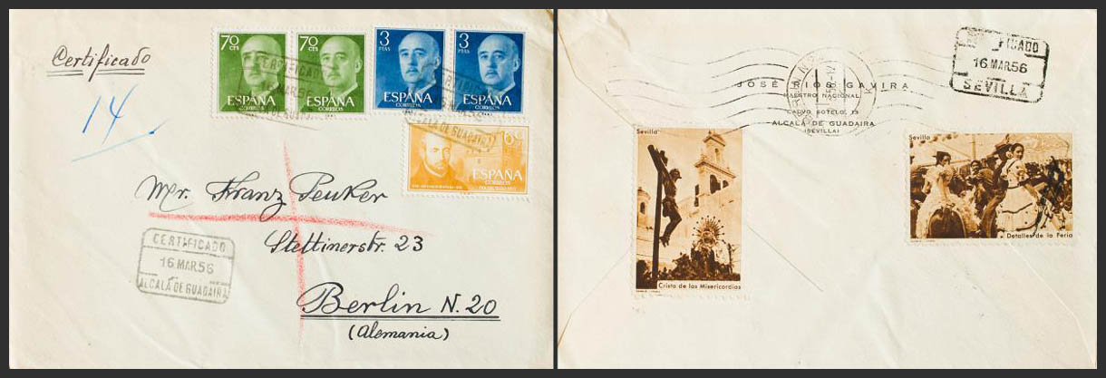 2º Centenario anterior a 1960. CERTIFICADO / ALCALA DE GUADAIRA, al dorso llegada. MAGNIFICA.