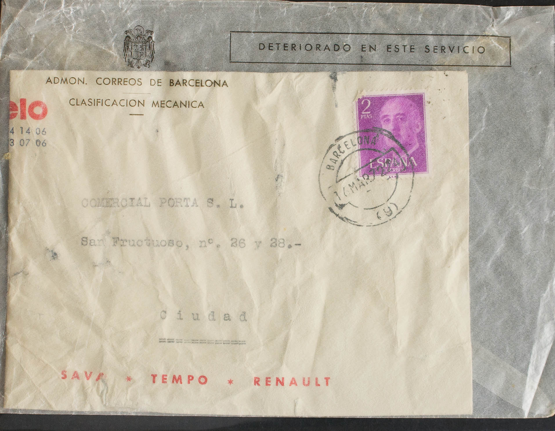 2º Centenario anterior a 1960. Sobre "deteriorado en este servicio". MAGNIFICO Y MUY RARO.