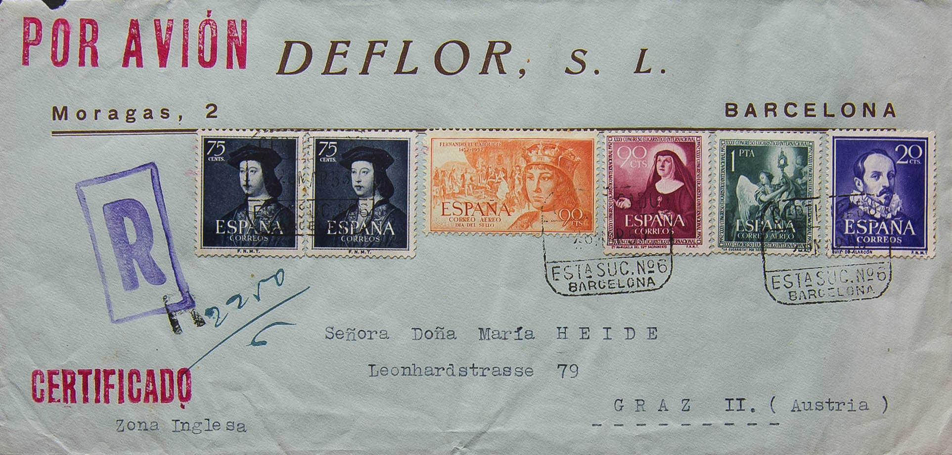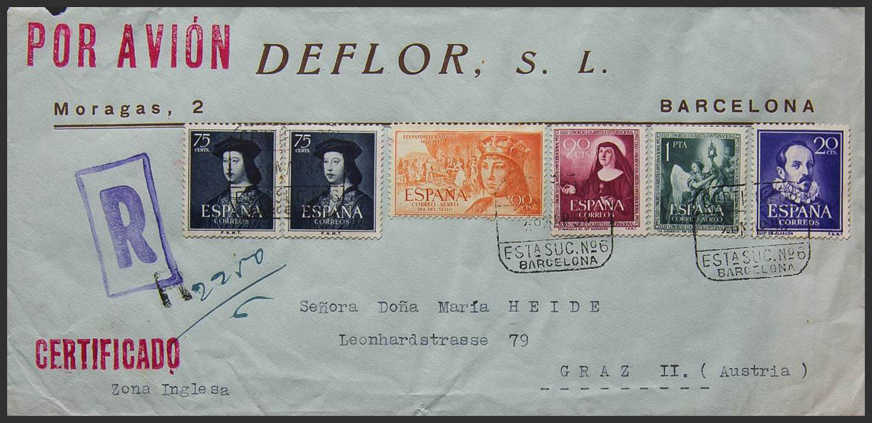2º Centenario anterior a 1960. CERTIFICADO / BARCELONA, al dorso llegada. MAGNIFICA.