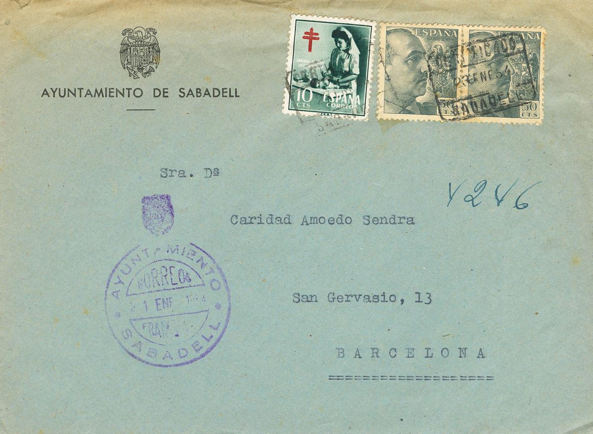 2º Centenario anterior a 1960. PROTUBERCULOSOS. CERTIFICADO / SABADELL, al dorso llegada. MAGNIFICA.