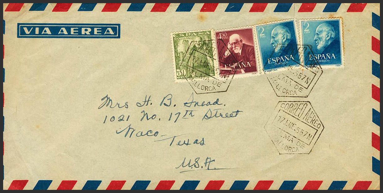 2º Centenario anterior a 1960. CORREO AEREO / PALMA DE MALLORCA. MAGNIFICA.