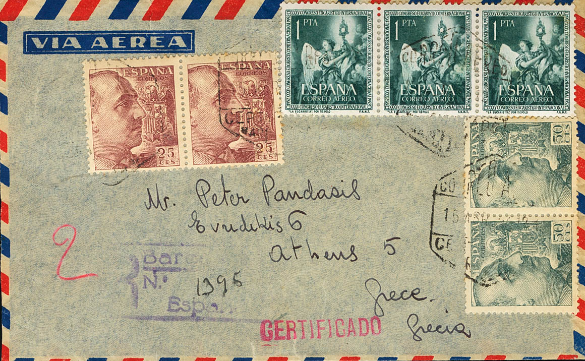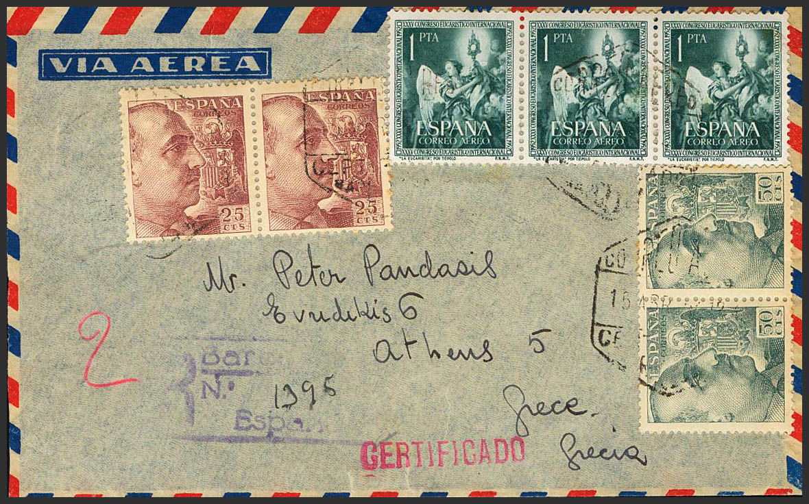 2º Centenario Correo Aéreo. Dirigida a GRECIA. Al dorso llegada. MAGNIFICA Y ESPECTACULAR FRANQUEO.