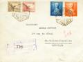 1093, 1095, 1044/45. 1951. 75 cts azul oscuro, 1´50 pts naranja, 5 cts castaño y 10 cts carmín. Certificado de PALMA DE MALLORCA a SAINT GILLES (BELGICA). Al dorso tránsito. MAGNIFICA.