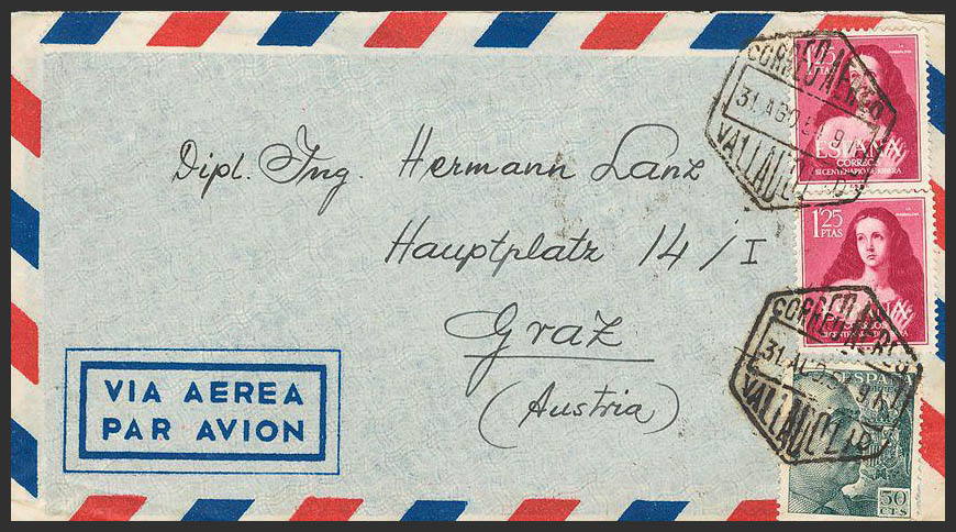 2º Centenario Correo Aéreo. CORREO AEREO / VALLADOLID, al dorso llegada. MAGNIFICA.