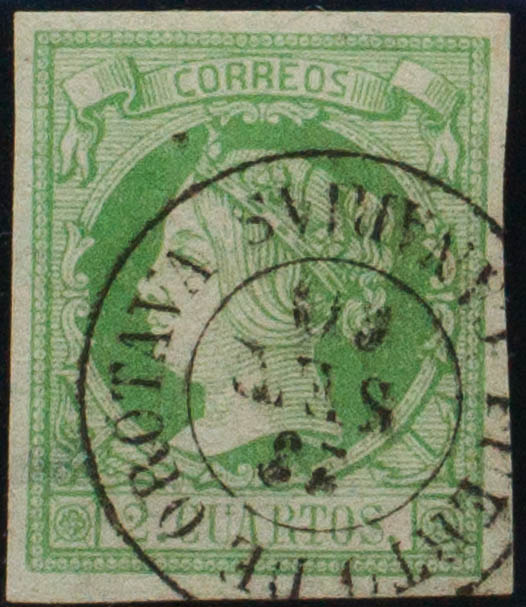 51. 1860. 2 cuartos verde. Matasello PUERTO DE OROTAVA / CANARIAS. MAGNIFICO.