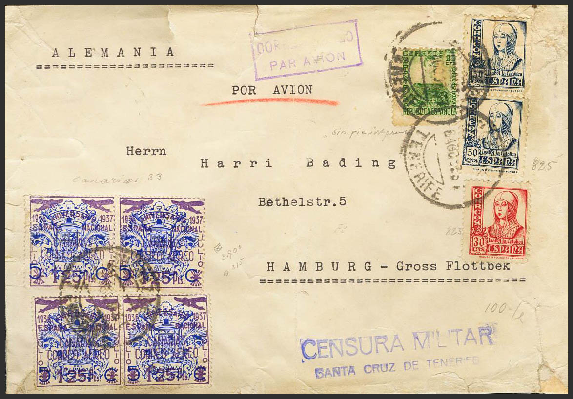 Canarias. ESPECTACULAR FRANQUEO (sobre abierto para exposición).