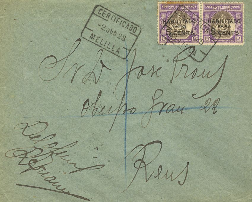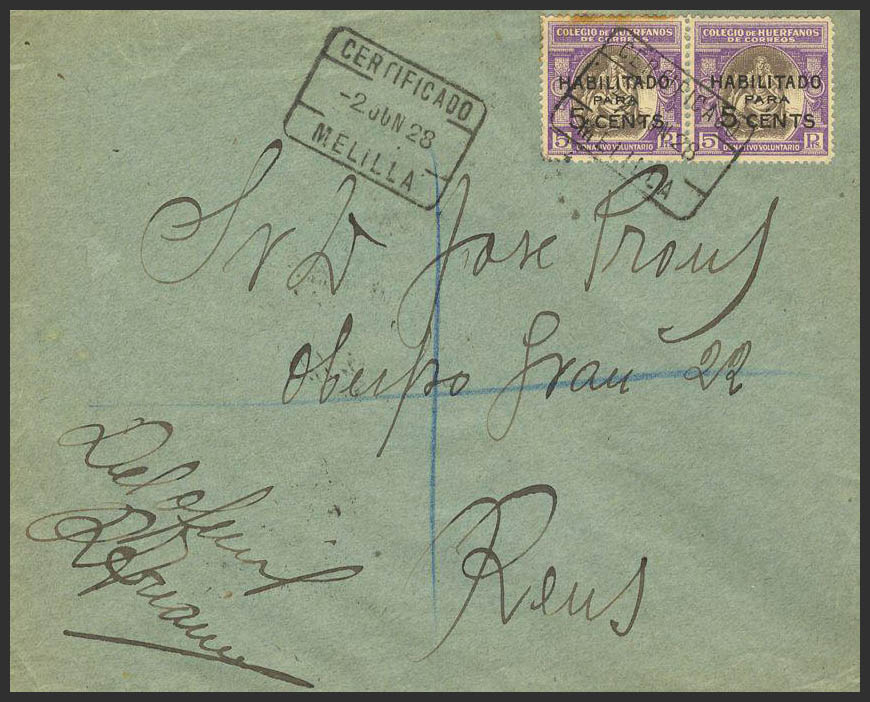 Beneficencia. CERTIFICADO / MELILLA. Al dorso llegada. MAGNIFICA.