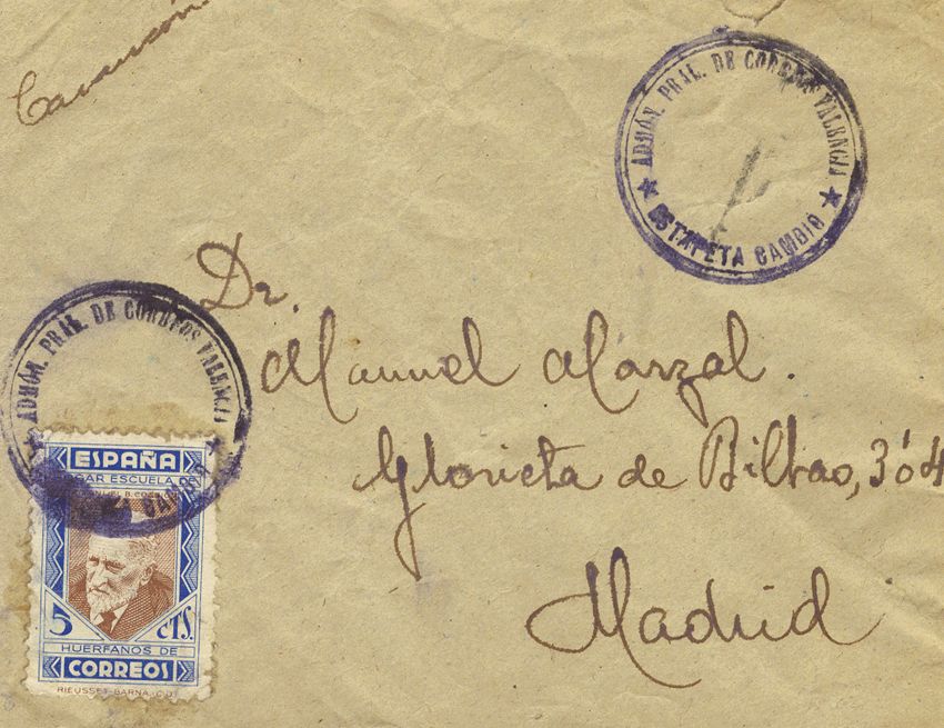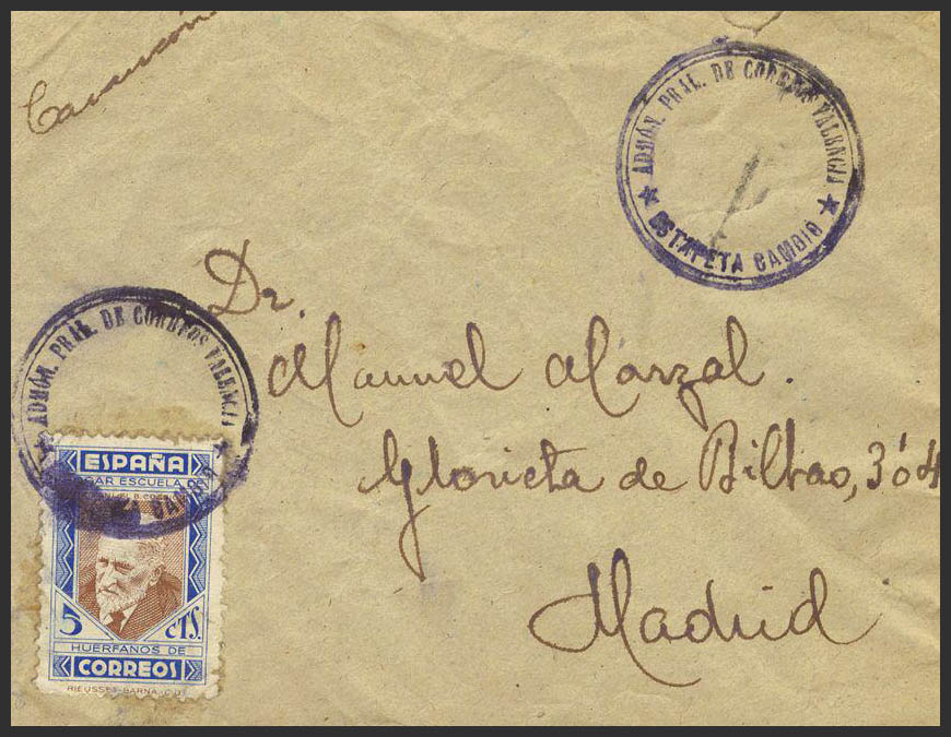 Beneficencia. ADMON. PRAL. DE CORREOS DE VALENCIA / ESTAFETA DE CAMBIO. MAGNIFICA.