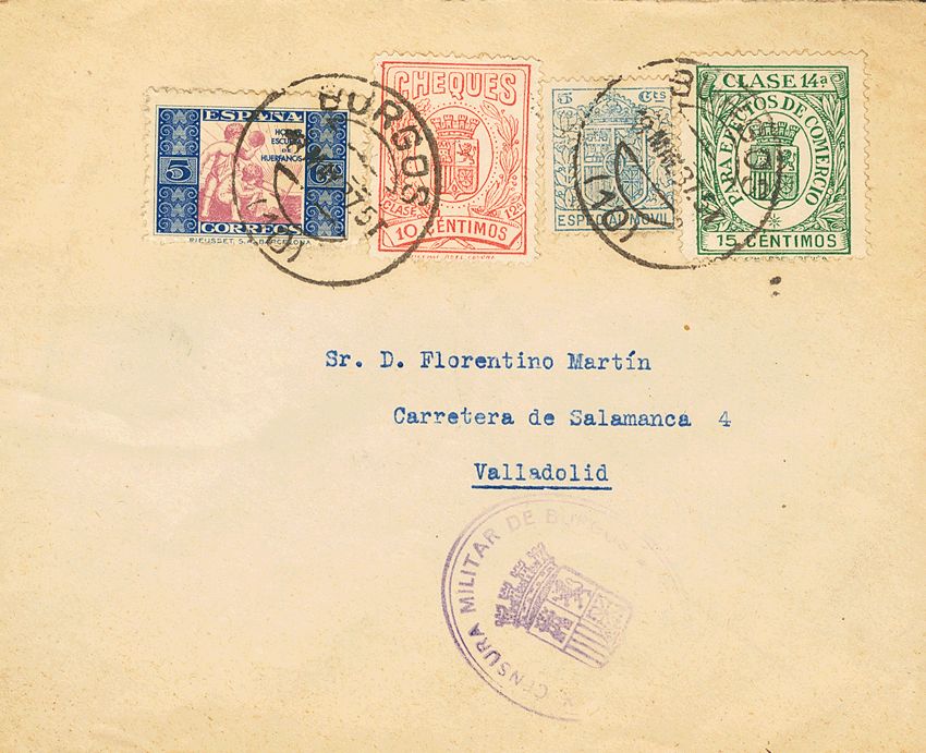 Beneficencia. BURGOS / 10. MAGNIFICA E INUSUAL FRANQUEO.