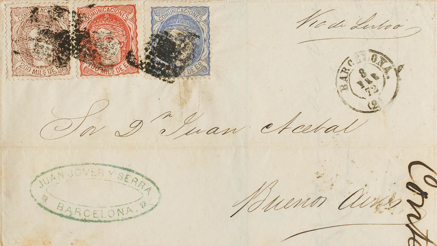 Gobierno Provisional. MAGNIFICO FRANQUEO TRICOLOR.
