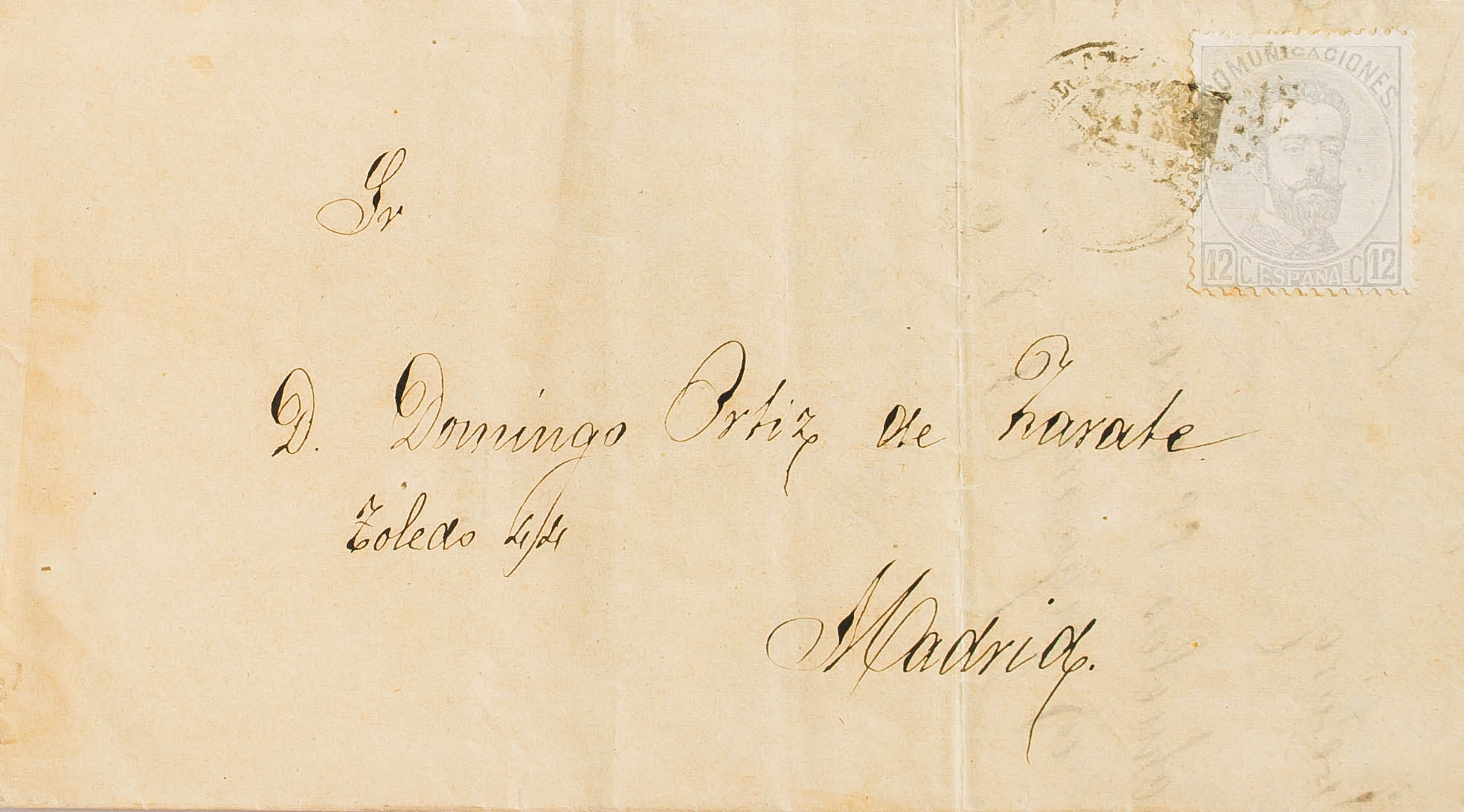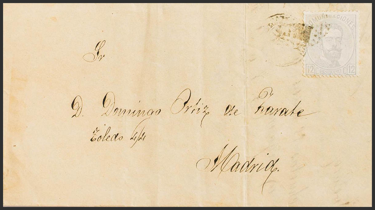 Amadeo I. MEDINA DEL CAMPO a MADRID. Tarifa de 12 cuartos. MAGNIFICA Y MUY RARA.