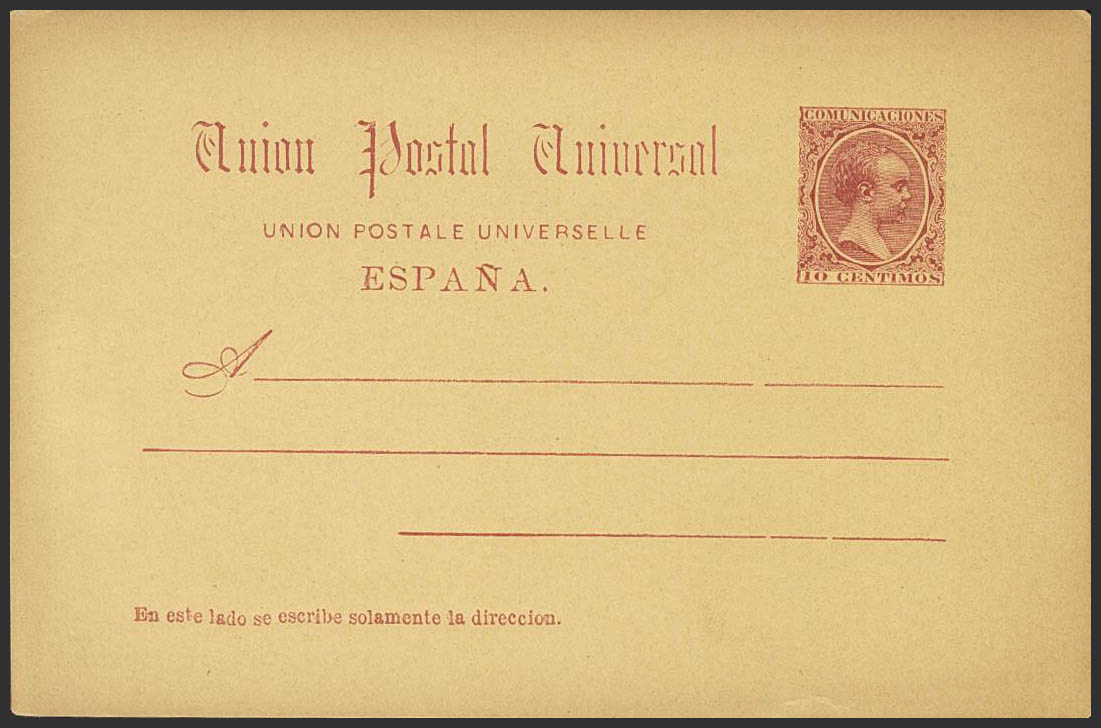 (★) EP21. 1889. 10 cts carmÃn sobre Tarjeta Entero Postal. MAGNIFICA. Edifil 2019: 17 Euros