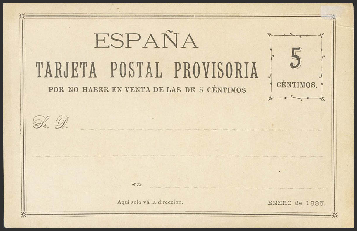 (★) EPCC1. 1885. 5 cts negro. TARJETA POSTAL PROVISORIA DE CARRERAS CANDI (sin la marquilla violeta). MAGNIFICA.