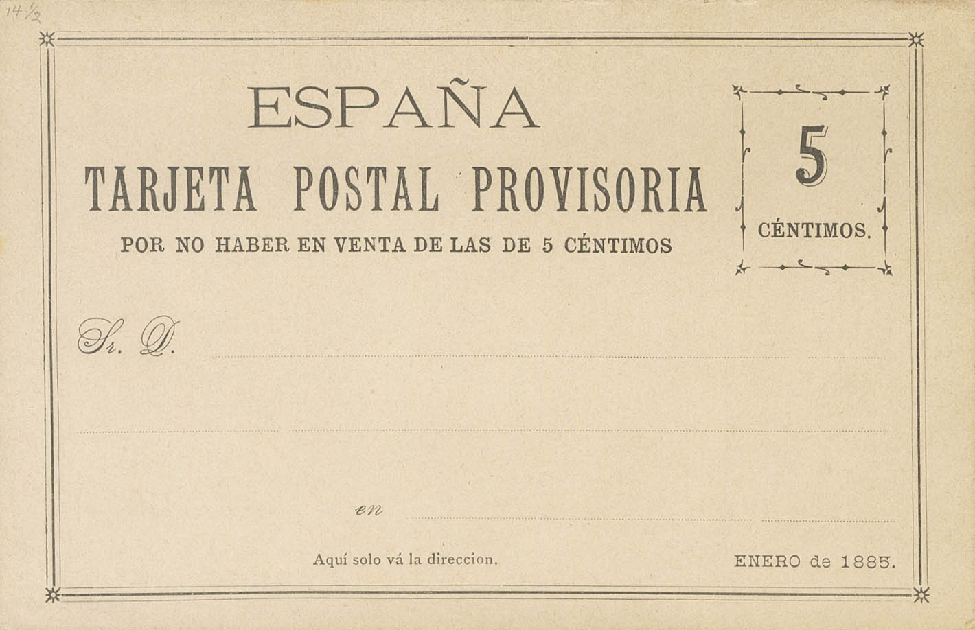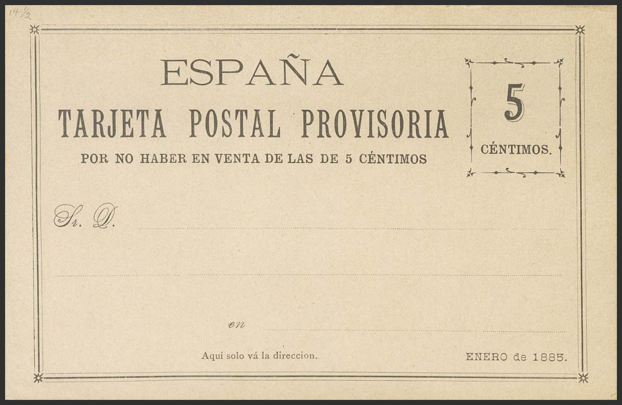 (★) EPCC1. 1885. 5 cts negro. TARJETA POSTAL PROVISORIA DE CARRERAS CANDI (sin la marquilla violeta). MAGNIFICA.