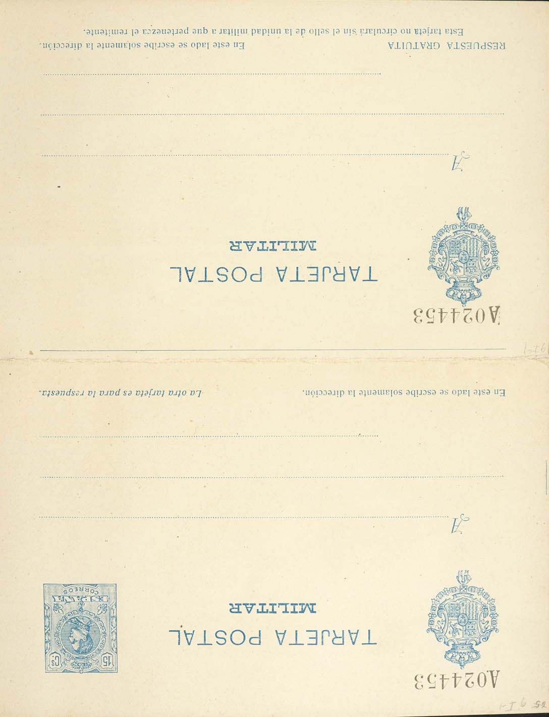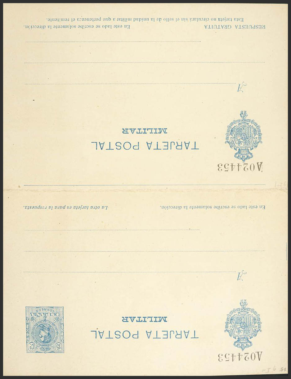 (★) EPM1. 1921. 15 cts + sin valor sobre Tarjeta Entero Postal Militar, de ida y vuelta. MAGNIFICA. Edifil 2020: 73 Euros