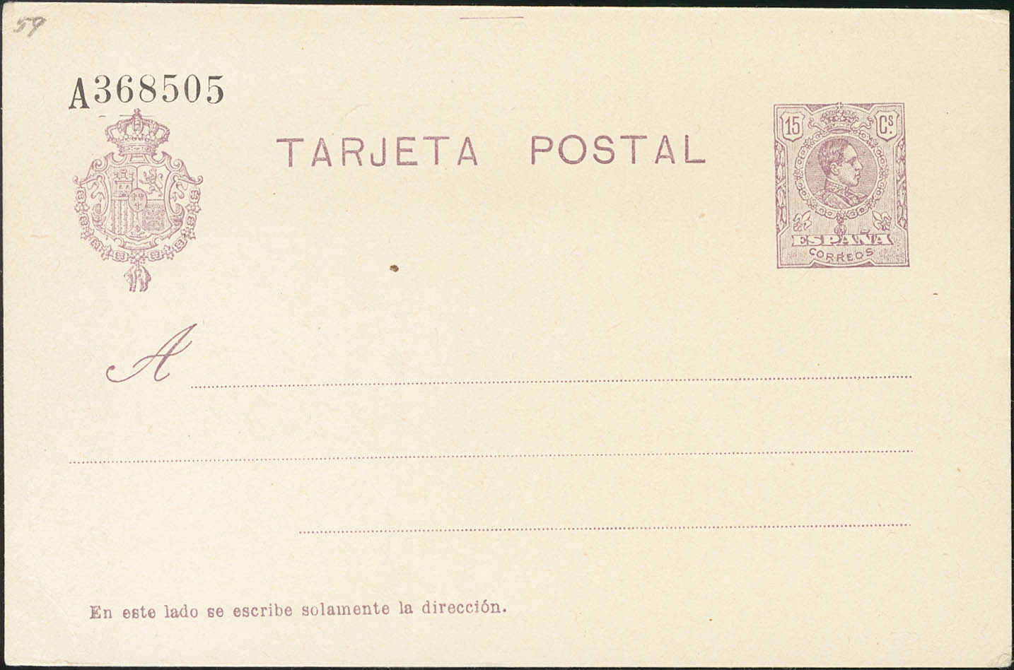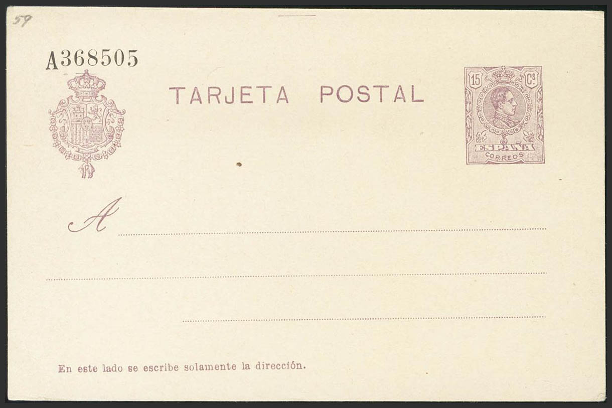 (★) EP50. 1910. 15 cts violeta sobre Tarjeta Entero Postal. MAGNIFICA. Edifil 2020: 88 Euros