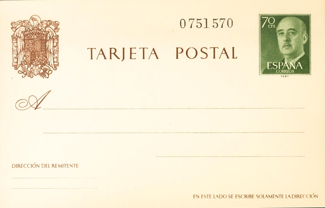 (★) EP90. 1962. 70 cts verde sobre Tarjeta Entero Postal. MAGNIFICA.