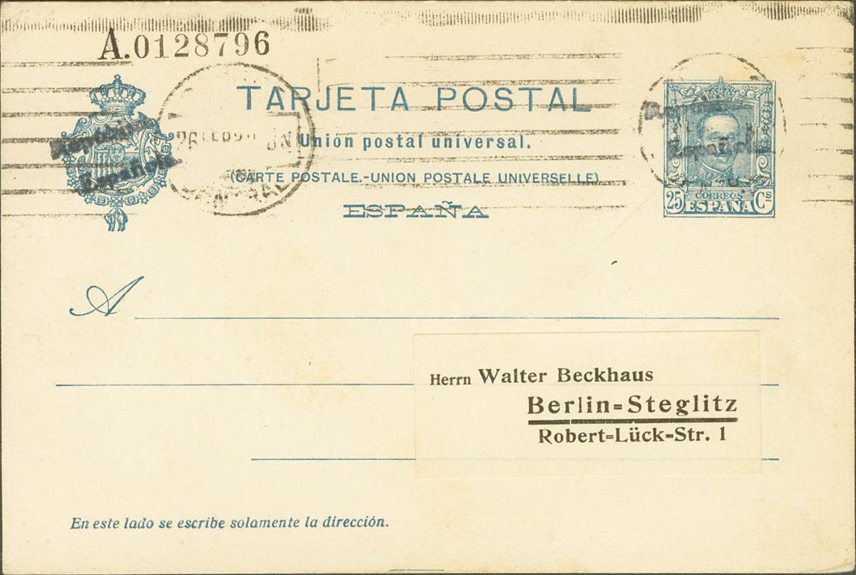 EP68. 1931. 25 cts azul (habilitación manual a dos lÃneas) sobre Tarjeta Entero Postal de MADRID a BERLIN (ALEMANIA). MAGNIFICA Y RARISIMA. Edifil 2023: 675 Euros